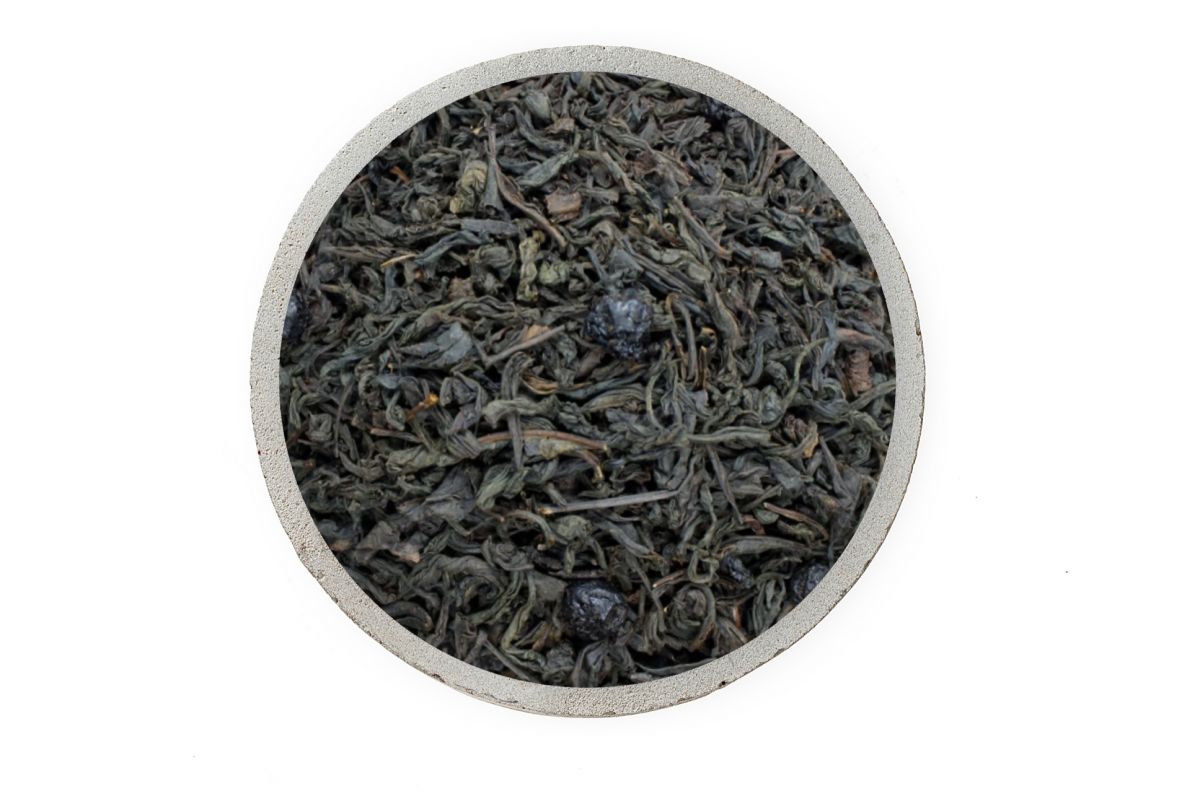 Черный листовой чай с добавлением ягод черники. При заваривании получается темный насыщенный настой с терпким вкусом и потрясающим ароматом черники с едва уловимыми сливочными нотками.