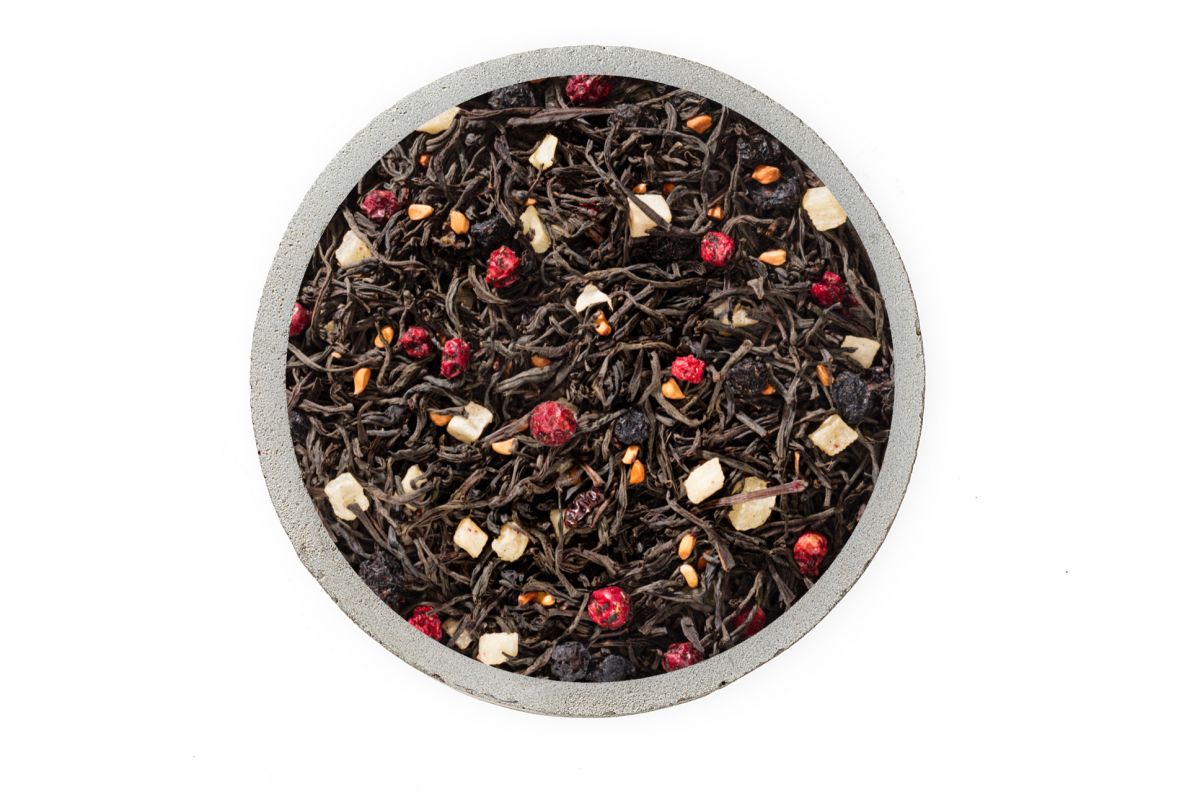 чай черный, Шиповник обработанный, кубики ананаса, черноплодная рябина, ягоды барбариса, ароматизатор